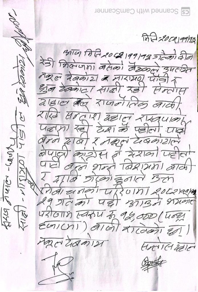 यस सहमतिमा केही व्यक्तिहरू साक्षीका रूपमा उपस्थित रहेको जनाइएको छ।